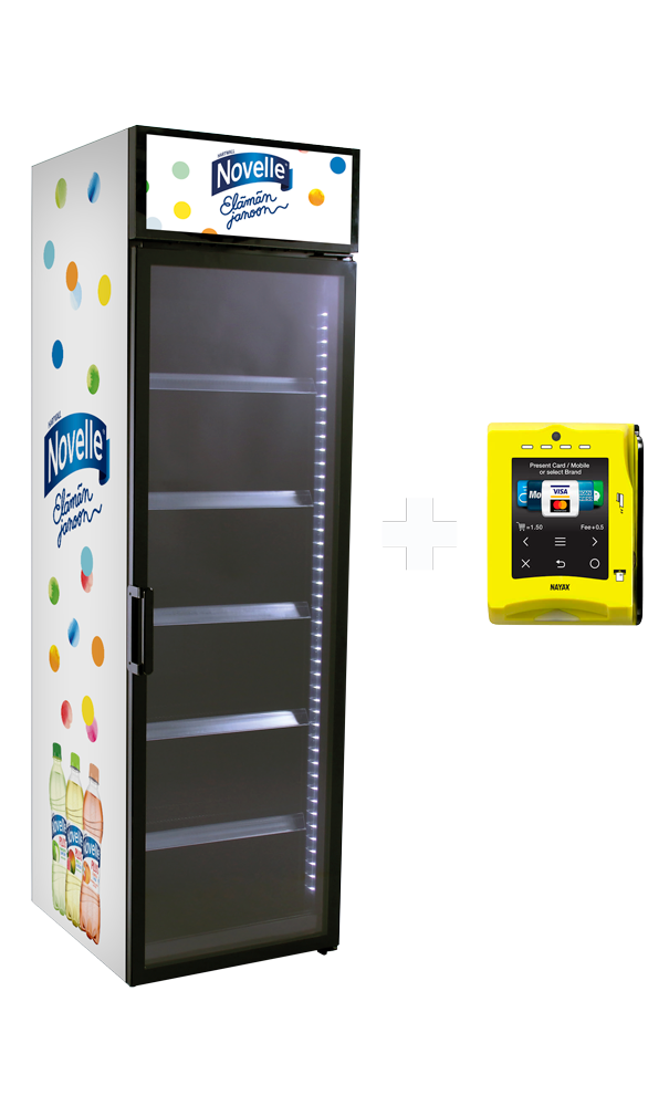 Lanseeraamme juomakaapin Nayaxin maksupäätteellä toimistoille. Yritykselläsi on myös mahdollisuus osallistua työntekijöittesi kustannuksiin maksamalla osa tuotteen hinnasta jo toimitusvaiheessa, jolloin pullon kustannus pienenee työntekijällesi.